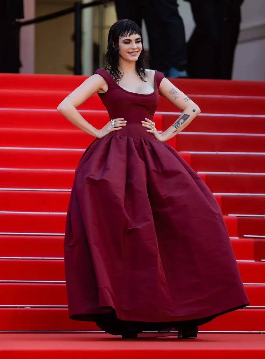 Ещё один странный выход у Коко Роша в Ionut Razvan. В целом платье выглядит интересно и напоминает творения Джереми Скотта в Moschino, в которых Коко всегда выглядела органично. Но в этот раз образ слишком перегружен массивной причёской. Кстати, о причёсках. Вот мы и подошли к главному гуру по треш-укладкам Лене Лениной, которую даже пытались запретить в Каннах из-за её причёсок. У писательницы всё стабильно: ещё пару неудачных каннских выходов в копилку.