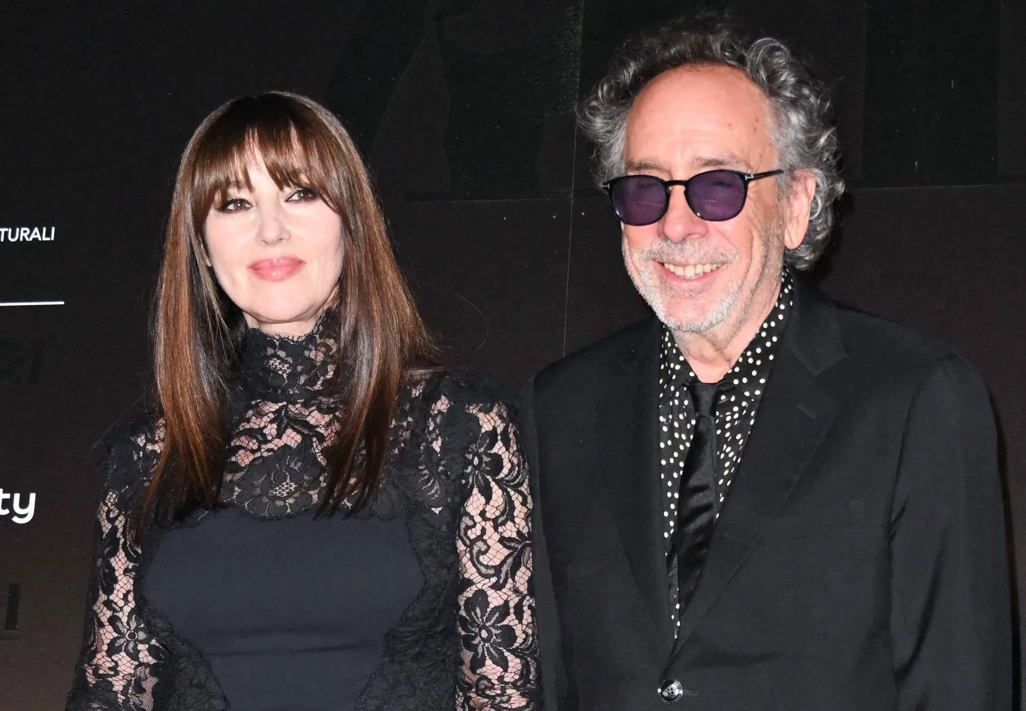 Перед фотографами Беллуччи появилась в черном полупрозрачном платье в пол, а на Бёртоне были чёрный костюм и рубашка в горошек.