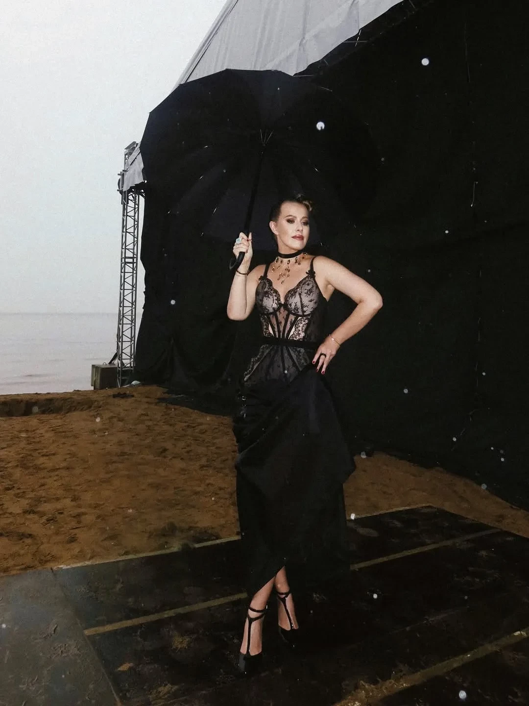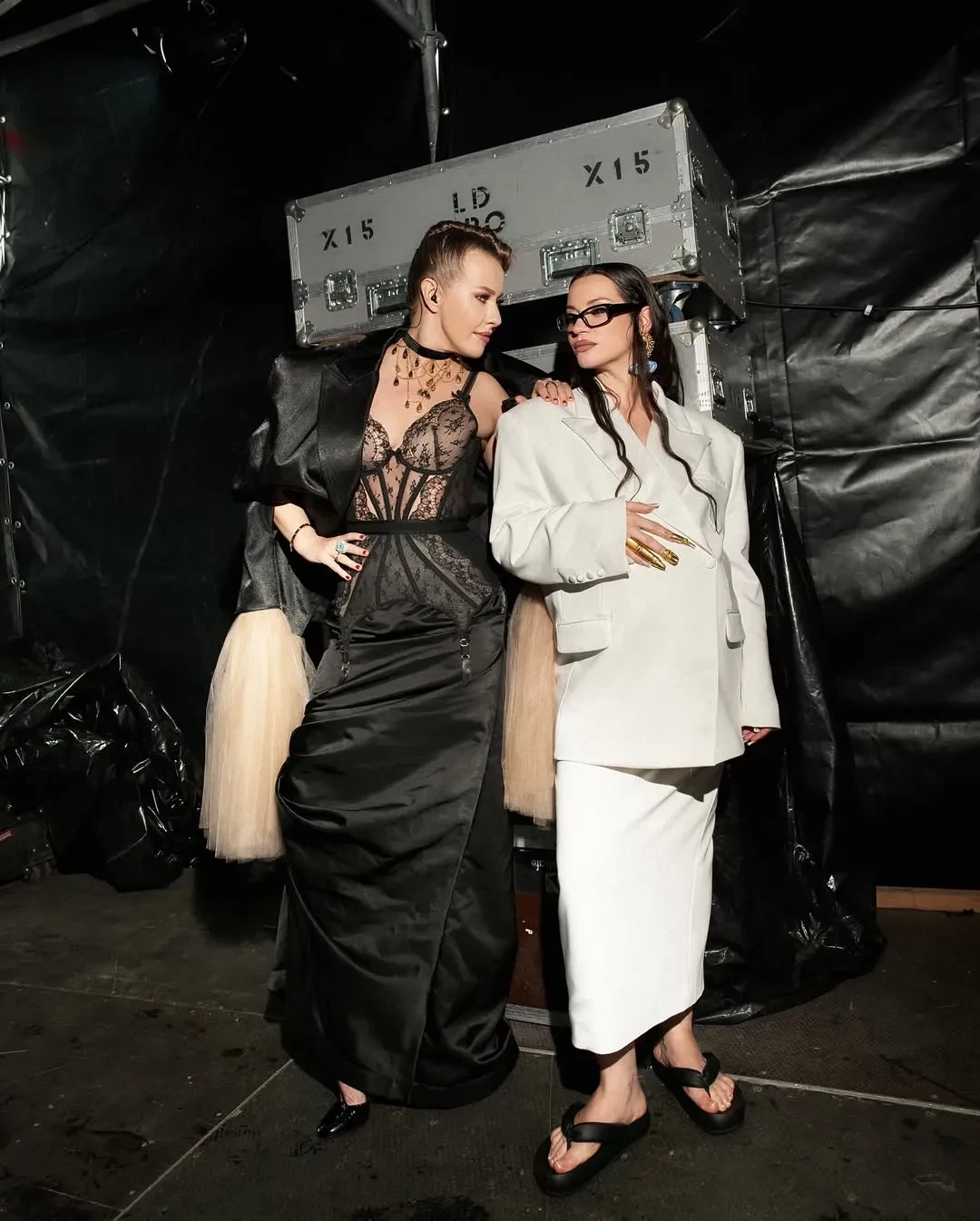 Ида Галич и Ксения СобчакИда Галич и Ксения СобчакКсения Собчак, за стиль которой отвечает модный столичный дуэт Миша и Китти, выходила на сцену в "фантастическом русском кутюре", как она назвала свой образ Viva Vox с костюмной серой юбкой, а также в кружевном корсете Agent Provocateur, юбке Ushatava и колье от Ульяны Сергеенко.