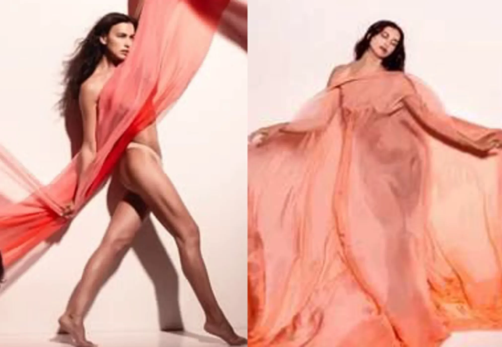 Благодаря им мы узнали, что на страницах календаря появится российская супермодель Ирина Шейк. На обнародованных кадрах её можно увидеть позирующей практически обнажённой, не считая полупрозрачной ткани персикового цвета, прикрывающей её фигуру.