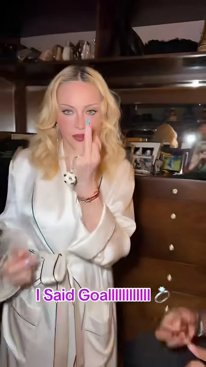 Мадонна отреагировала на слухи о том, что готовится выйти замуж за своего 29-летнего бойфренда-футболиста Акима Морриса. В своём тиктоке она опубликовала видео, в котором принимает от стоящего на одном колене Морриса "кольцо" в виде брелка с футбольным мячиком. В конце ролика 67-летняя певица показывает на камеру средний палец.