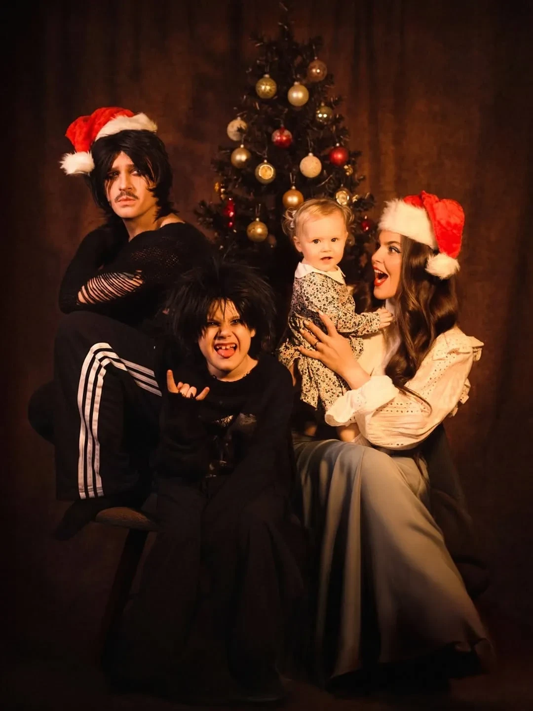 Ким Кардашьян нашла идеальное праздничное платье в коллекции 1986 года культового дизайнера Thierry Mugler и устроила фотосессию в нём на фоне "заснеженной" ёлки. Селена Гомес в честь Рождества опубликовала совместное фото с мужем Бенни Бланко, а Илья Прусикин* и Софья Таюрская устроили семейную фотосессию в dark-эстетике.