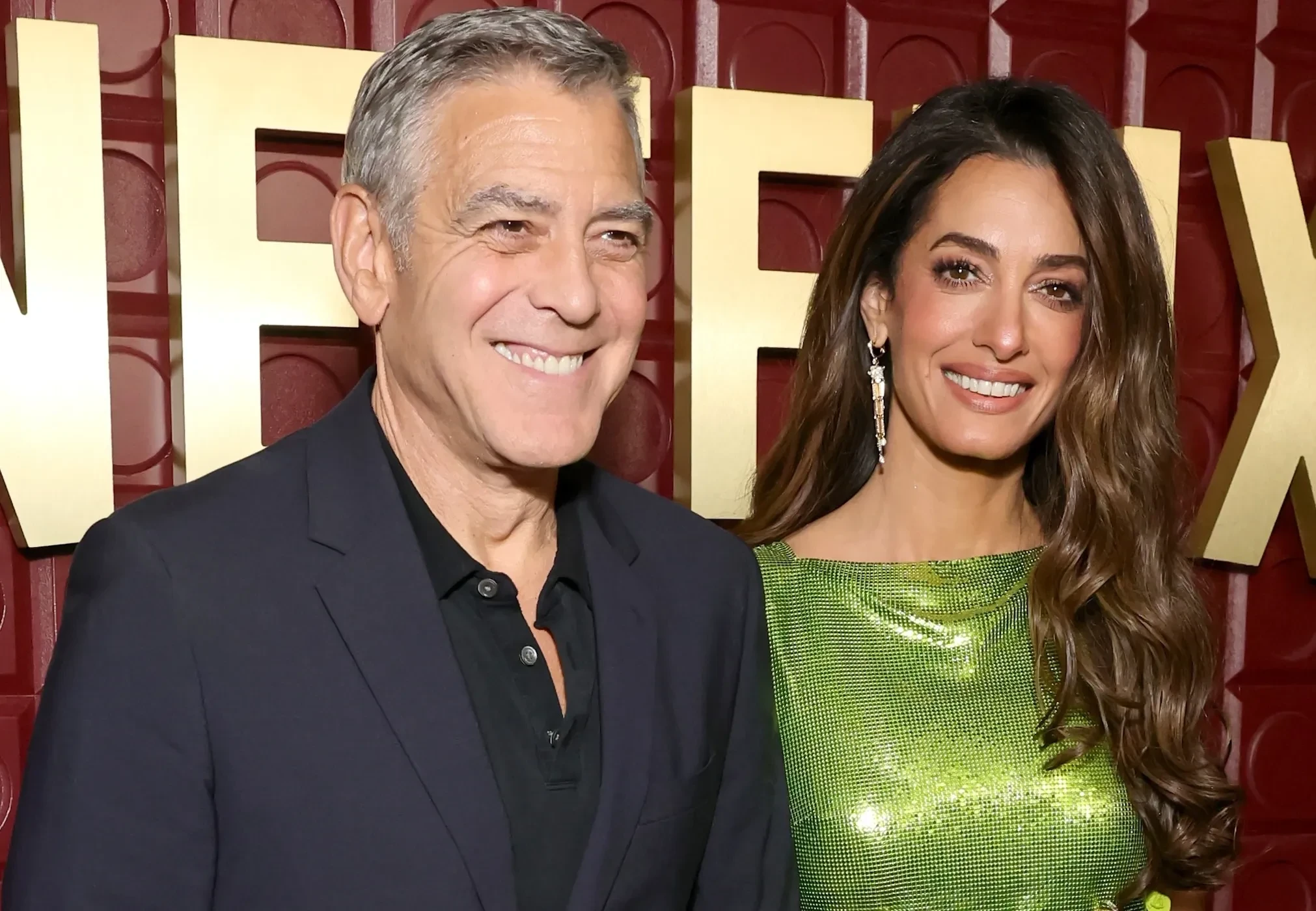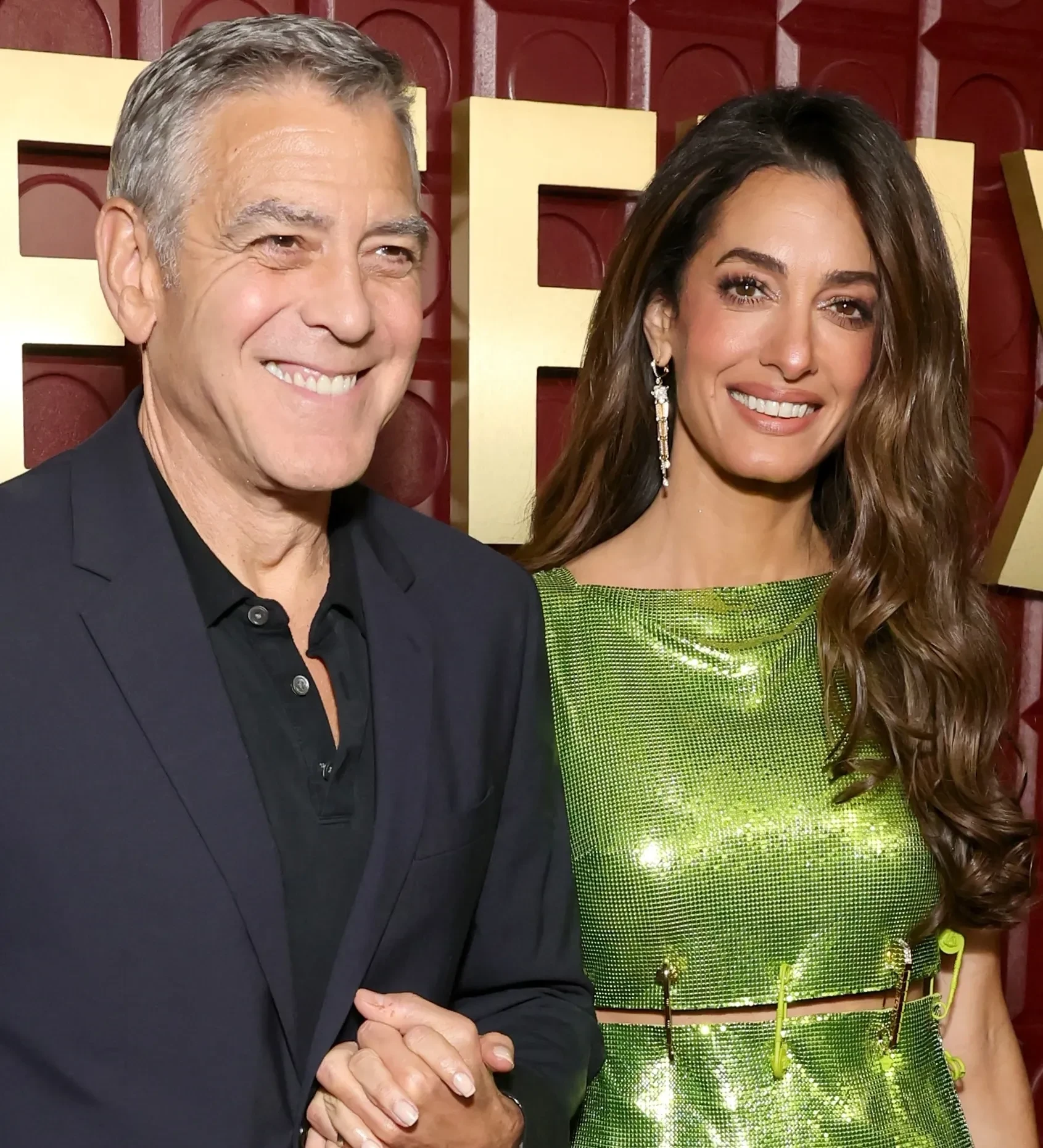 47-летняя Амаль Клуни, которая блистала на дорожке премии в винтажном Balmain, появилась на мероприятии в коротком зелёном платье Versace и золотых туфлях.