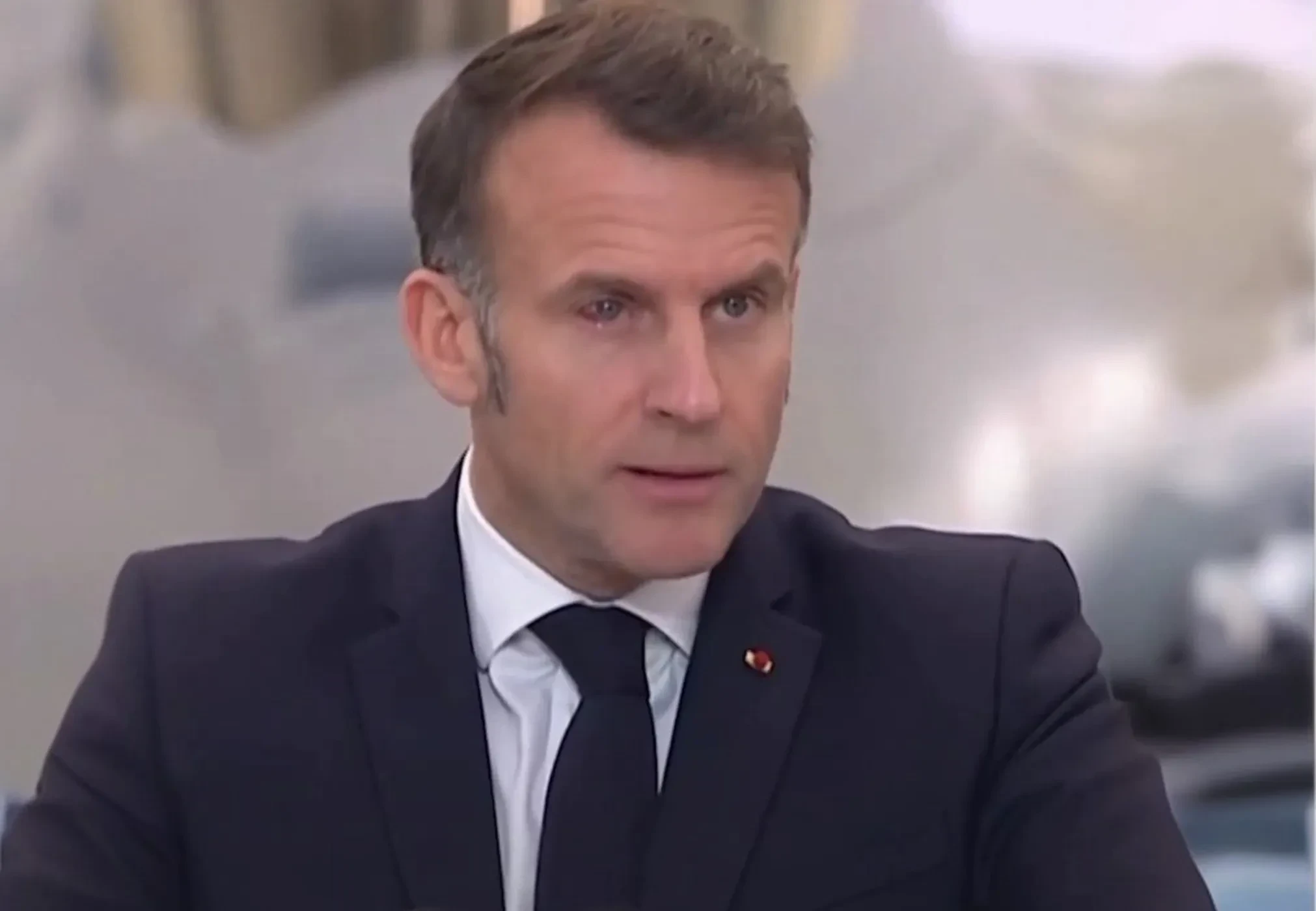 "Прошу прощения за неприглядный вид моего глаза. Это, конечно, совершенно безобидно. Просто непреднамеренная отсылка к "Глазу тигра"… Для тех, кто понял, это знак решимости", — пошутил Макрон, имея в виду название саундтрека к фильму "Рокки 3" 1982 года с Сильвестром Сталлоне в главной роли.