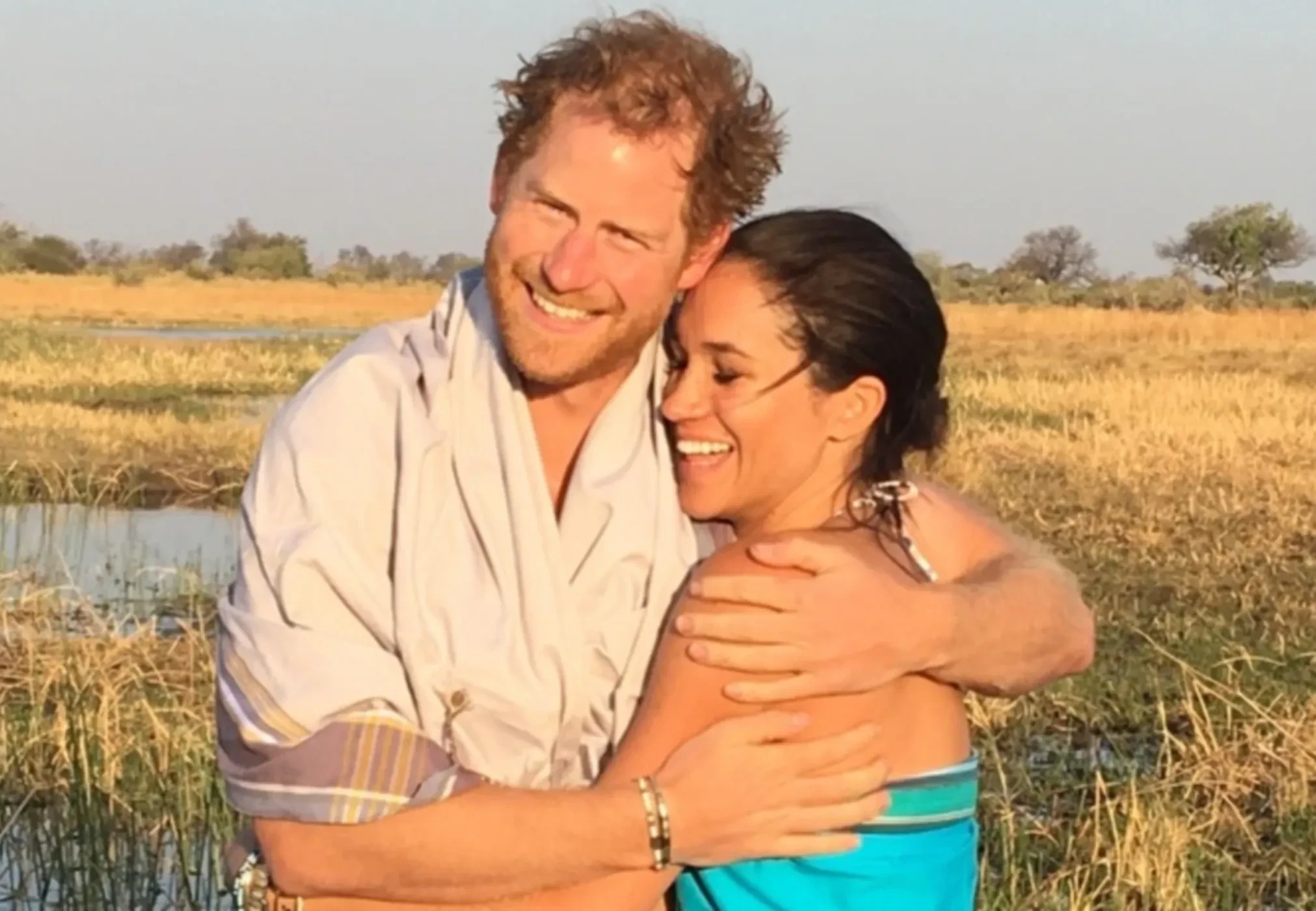 На кадре Гарри и Меган позируют вместе в обнимку — снимок был сделан в Ботсване (Африка) во время их первого совместного путешествия. Перед этим у будущих супругов было всего два свидания, и чтобы узнать друг друга лучше, они решили отправиться в пятидневный трип с палатками.