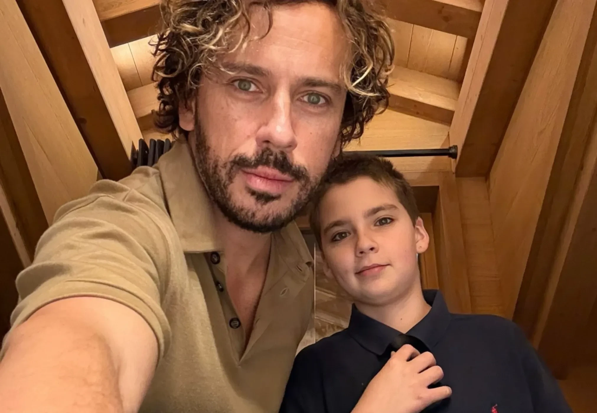 На снимке 12-летний Гарри, который ранее не так охотно снимался, позирует рядом с отцом в синей рубашке Ralph Lauren и чёрном галстуке. В подборку Галкин* также добавил кадр, где он отдельно запечатлён за большим праздничным столом, а также фото украшенных гирляндами елей. Вместо подписи пародист оставил эмодзи с солнечными очками.