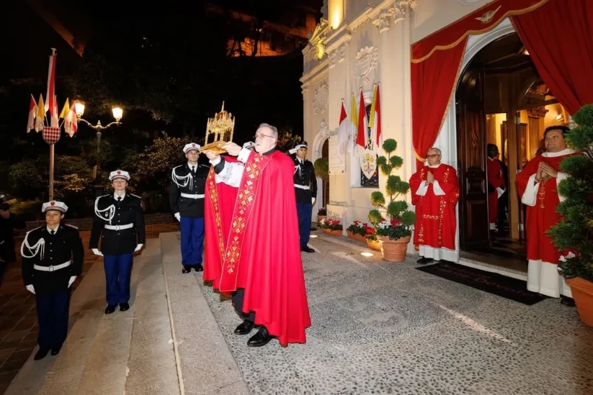 Празднование дня Святой ДевотыНа следующий день 67-летний князь Альбер II и Шарлен прибыли на утреннюю службу в собор Монако, которую возглавил кардинал Пьербаттиста Пиццабалла, латинский патриарх Иерусалима. После церемонии супруги наблюдали из окон Княжеского дворца за традиционным шествием мощей Святой Девоты по улицам княжества.