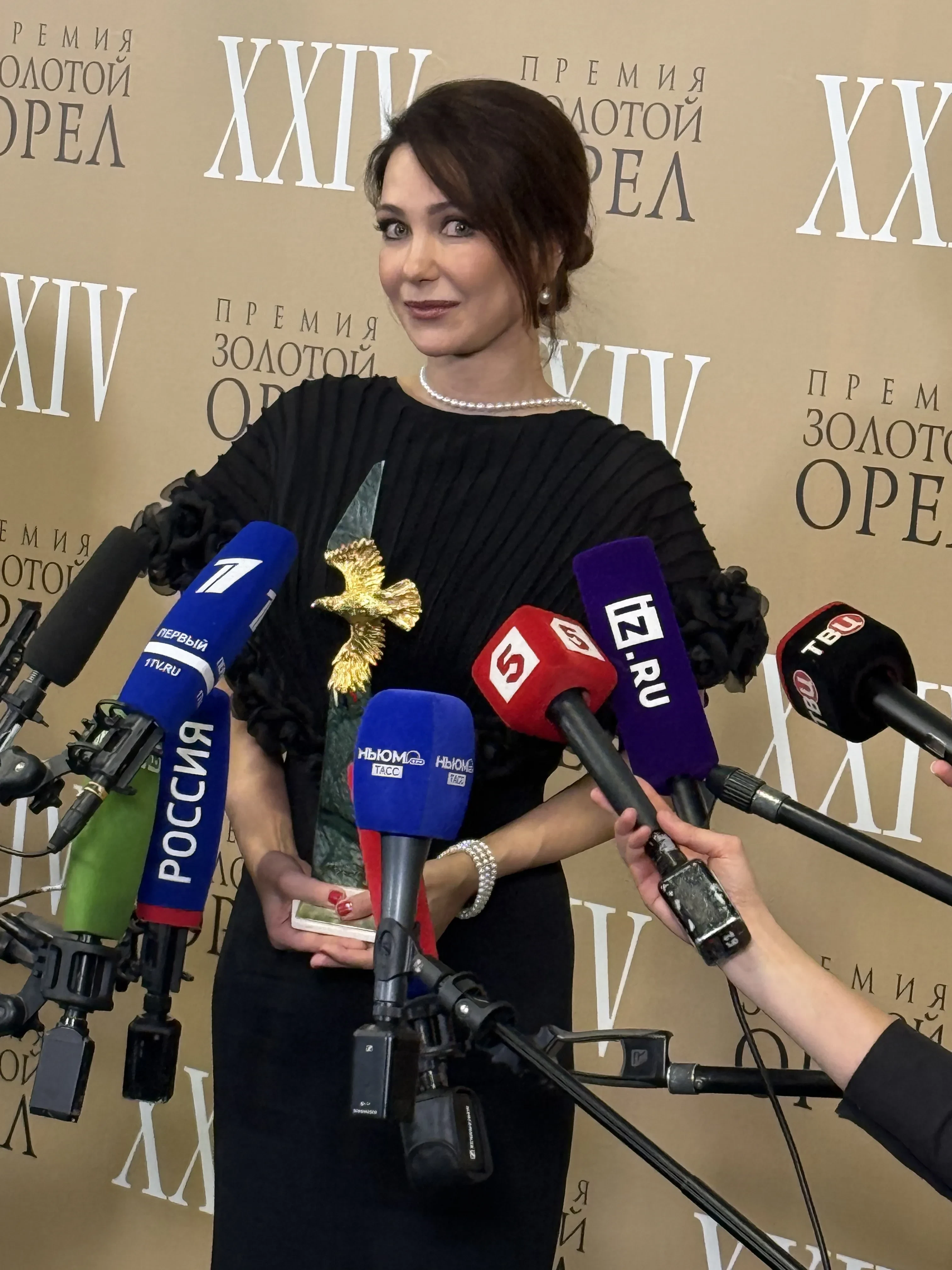 30 января в первом павильоне киноконцерна "Мосфильм" в Москве состоялась 24-я церемония вручения премии "Золотой орел". На красную дорожку вышли Юлия Пересильд, Анна Чиповская, Екатерина Климова, Софья и Константин Эрнст, Сергей Безруков с женой Анной Матисон, Екатерина и Александр Стриженовы, Алексей Учитель, Янина Студилина, Екатерина Гусева, Милош Бикович, Никита Кологривый, Светлана Дружинина, Ольга Лерман и многие другие.