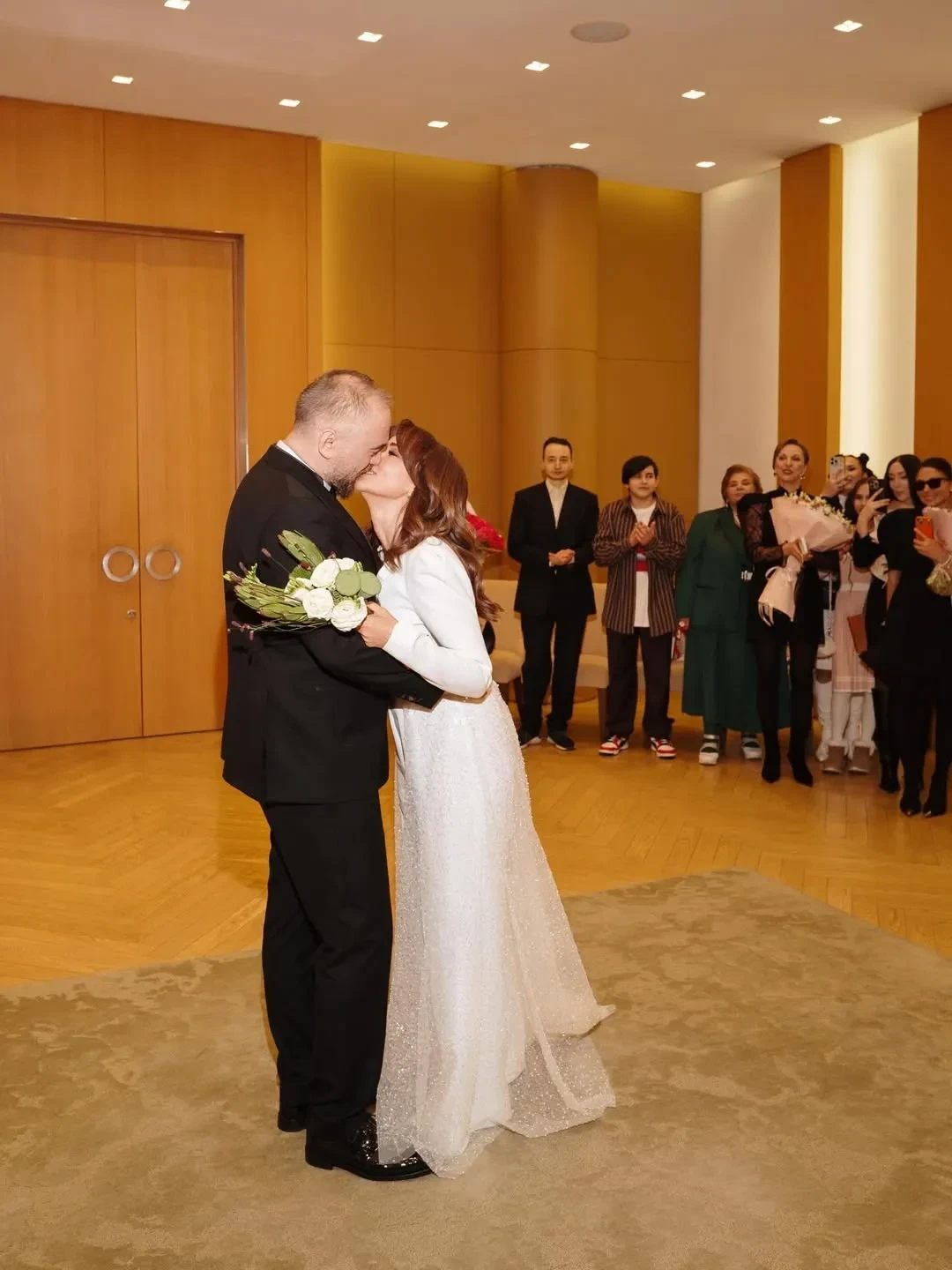 Анфиса Чехова сообщила, что впервые вышла замуж — за 44-летнего актёра и продюсера Александра Златопольского. В своём инстаграме* она показала кадры из загса, на которых предстала в белом брючном наряде.