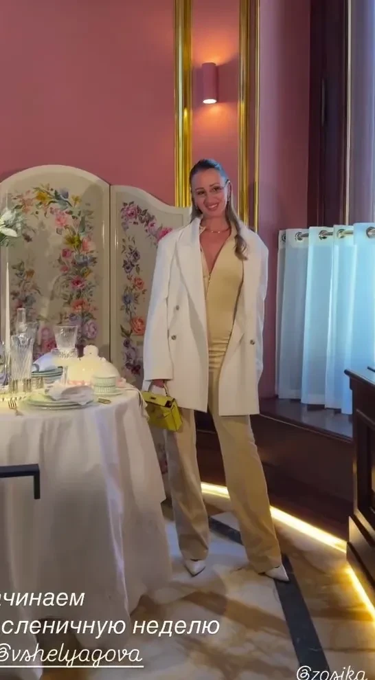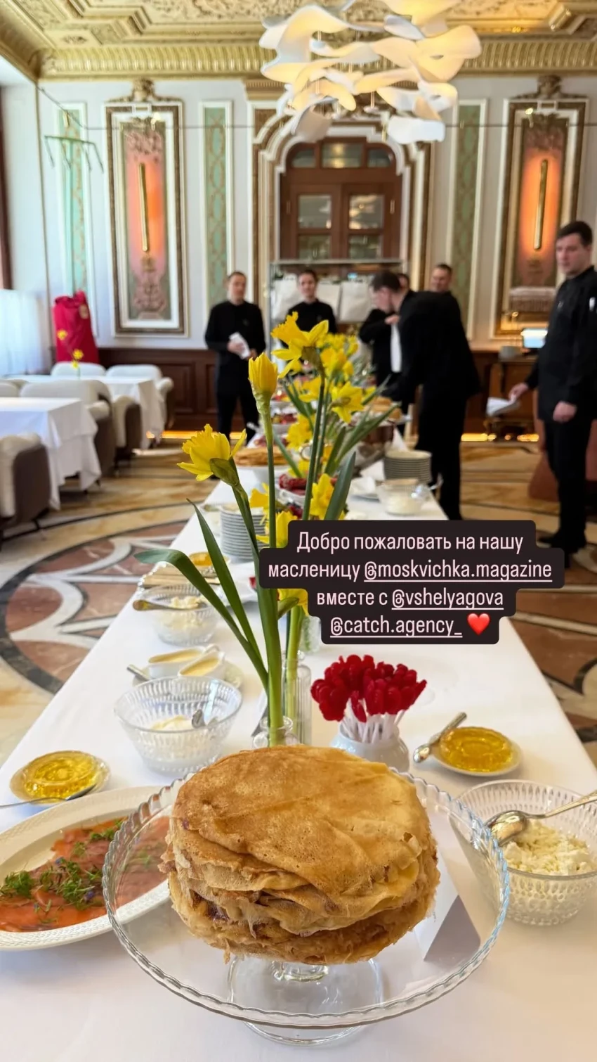 Блины, казачий хор и "жёлтый" дресс-код: Яна Рудковская, Андрей Малахов, Кристина Потупчик на Масленице Виктории Шеляговой в Savoy