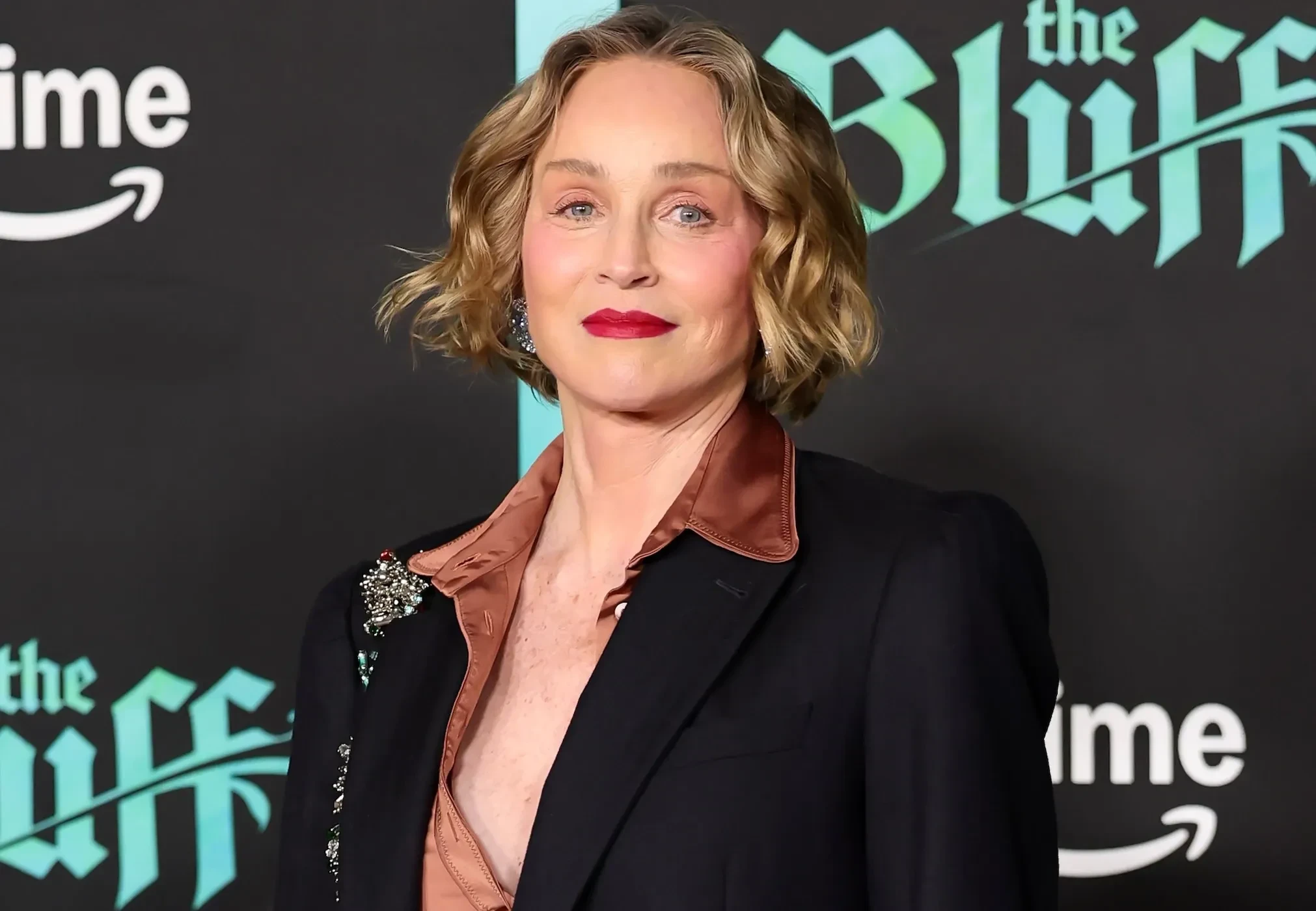 67-летняя Шэрон Стоун вышла в свет в брючном костюме и с декольте, а 43-летняя Приянка Чопра позировала в коричневом платье с кожаным корсетом и разрезом.