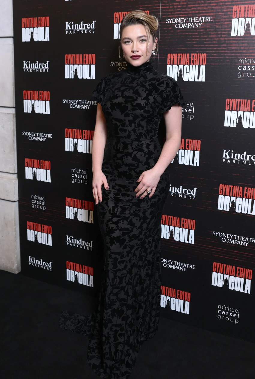 Приянка Чопра и Ник Джонас30-летняя Флоренс Пью надела на премьеру "Дракулы" длинное чёрное платье, дополнив образ тёмной помадой и укладкой с убранными волосами.