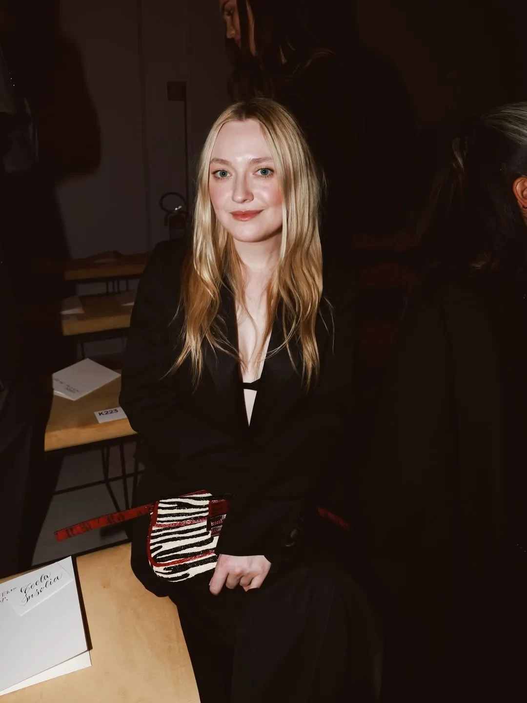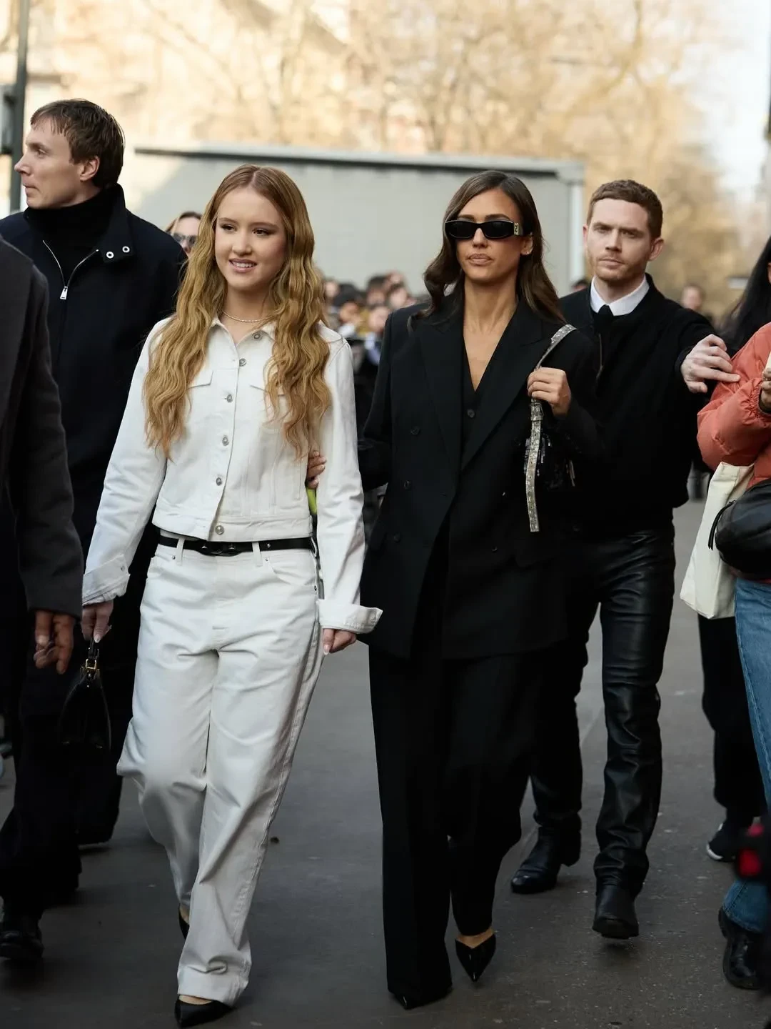 61-летняя Моника Беллуччи пришла на показ в чёрном брючном костюме с белой рубашкой и солнцезащитных очках. Похожие образы надели 44-летняя Джессика Альба, которая позировала фотографам вместе с 14-летней дочерью Хэвен, и Ума Турман. Елена Перминова пришла в платье и чёрных туфлях с носками в тон.
