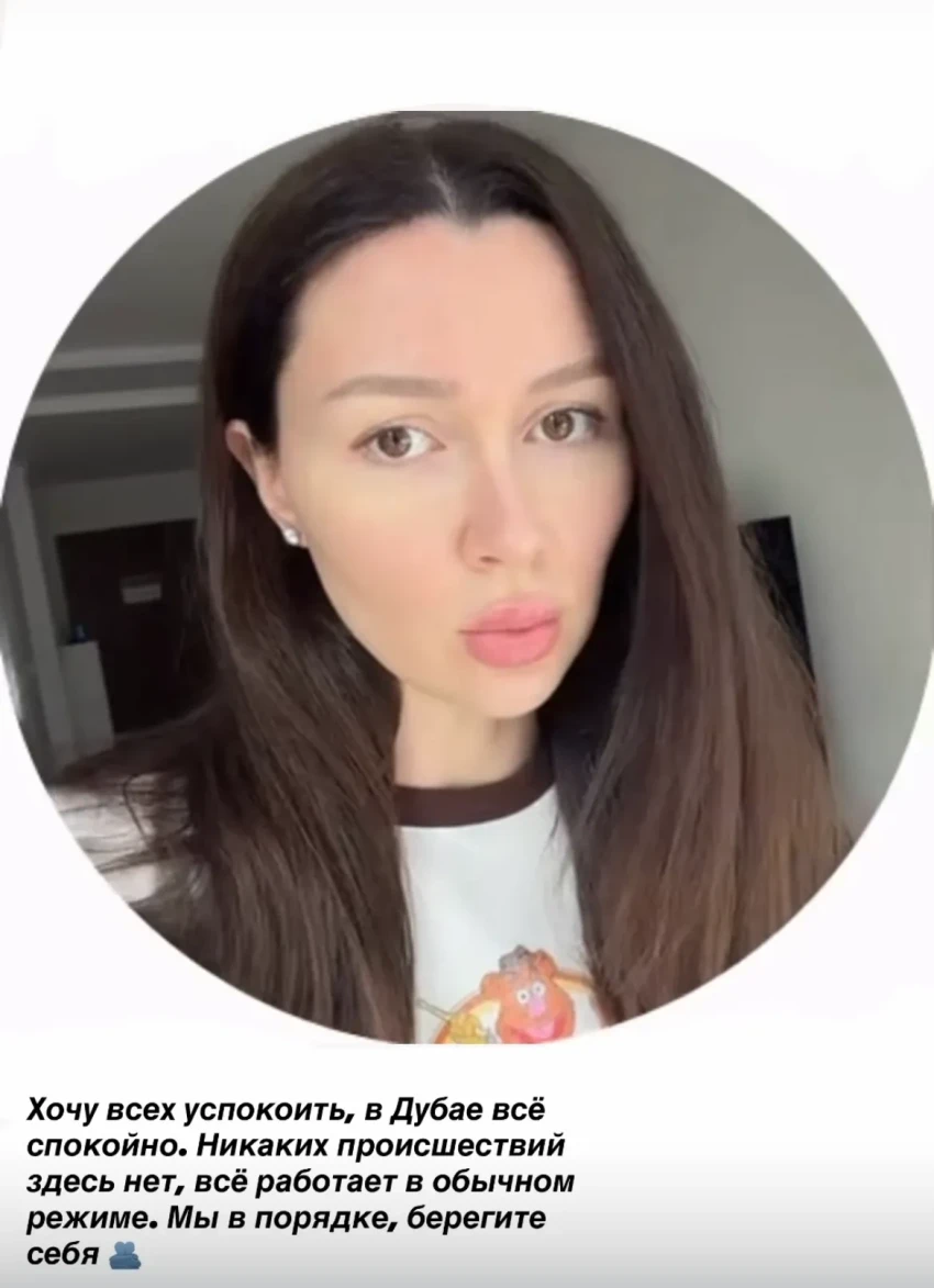 Фото Анны ЗаворотнюкНа связь с подписчиками вышла и певица Нюша, которая прилетела в Дубай, чтобы увидеться с детьми, проживающими с её бывшим мужем. Она рассказала в соцсетях, что с ней всё в порядке. "Я сейчас в Дубае. Всё хорошо, и с детками всё хорошо. Наблюдаем за ситуацией".