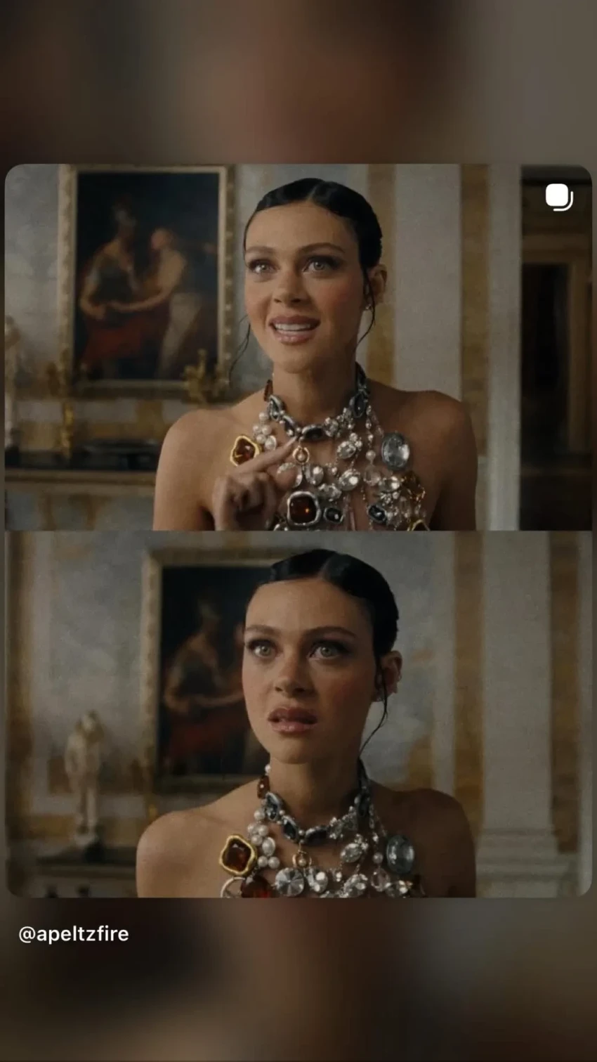 31-летняя Пельтц появилась в финальном эпизоде сериала "Красота" с Эштоном Кутчером в главной роли, сыграв "улучшенную" версию Фрэнни — жены его персонажа, которую играет 73-летняя Росселлини. При этом в одной из сцен Никола предстаёт в топе-колье из камней на голое тело, что стало аллюзией на знаменитый образ Росселлини в ленте "Смерть ей к лицу" Роберта Земекиса, которая вышла на экраны в 1992 году.