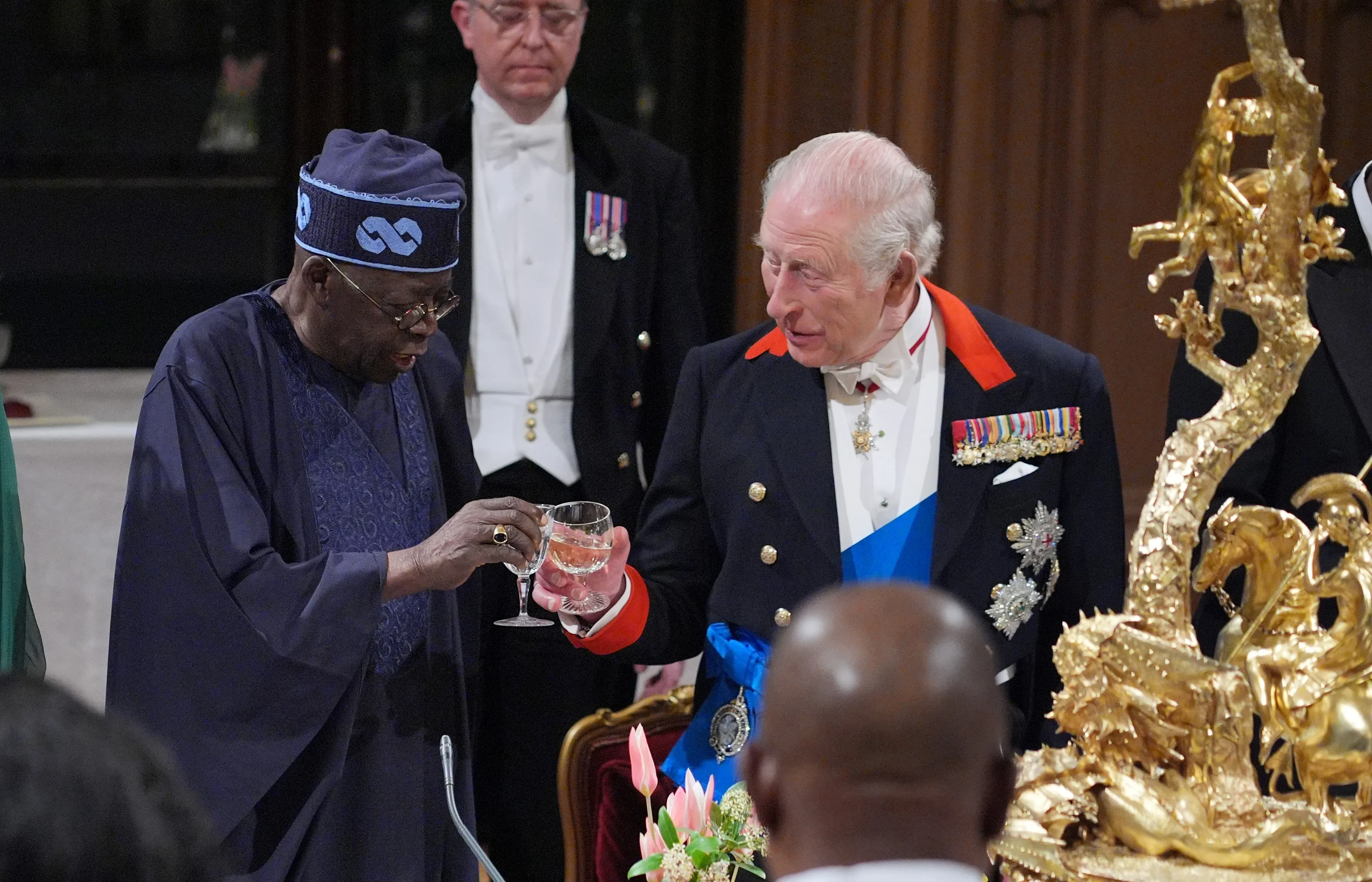 В Виндзорском замке состоялся государственный банкет в честь официального визита президента Нигерии Болы Тинубу и его жены Олуреми Тинубу в Великобританию. На мероприятии, как и полагается, присутствовали главы государств, члены монаршей семьи и другие почётные гости. Среди них: принц Уильям с супругой Кейт Миддлтон, король Карл III и королева Камилла, принцесса Анна с мужем, вице-адмиралом Тимом Лоуренсом, герцог Эдинбургский, а также герцог и герцогиня Глостерские.