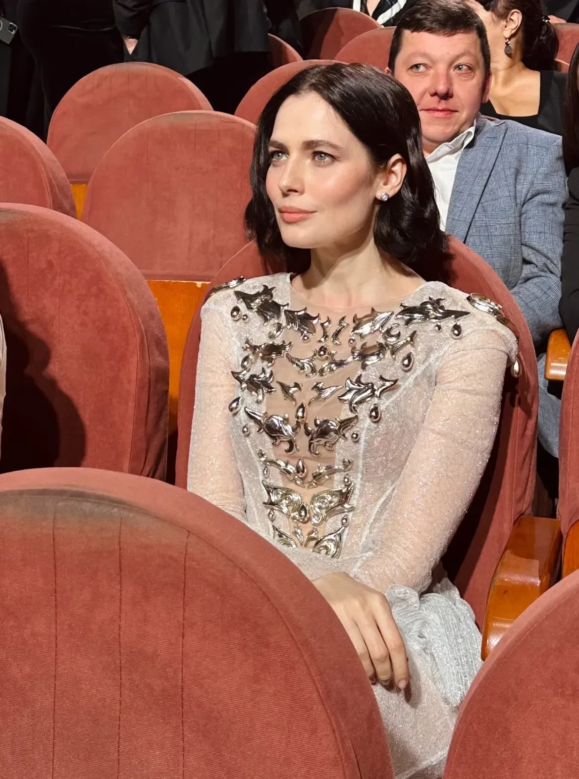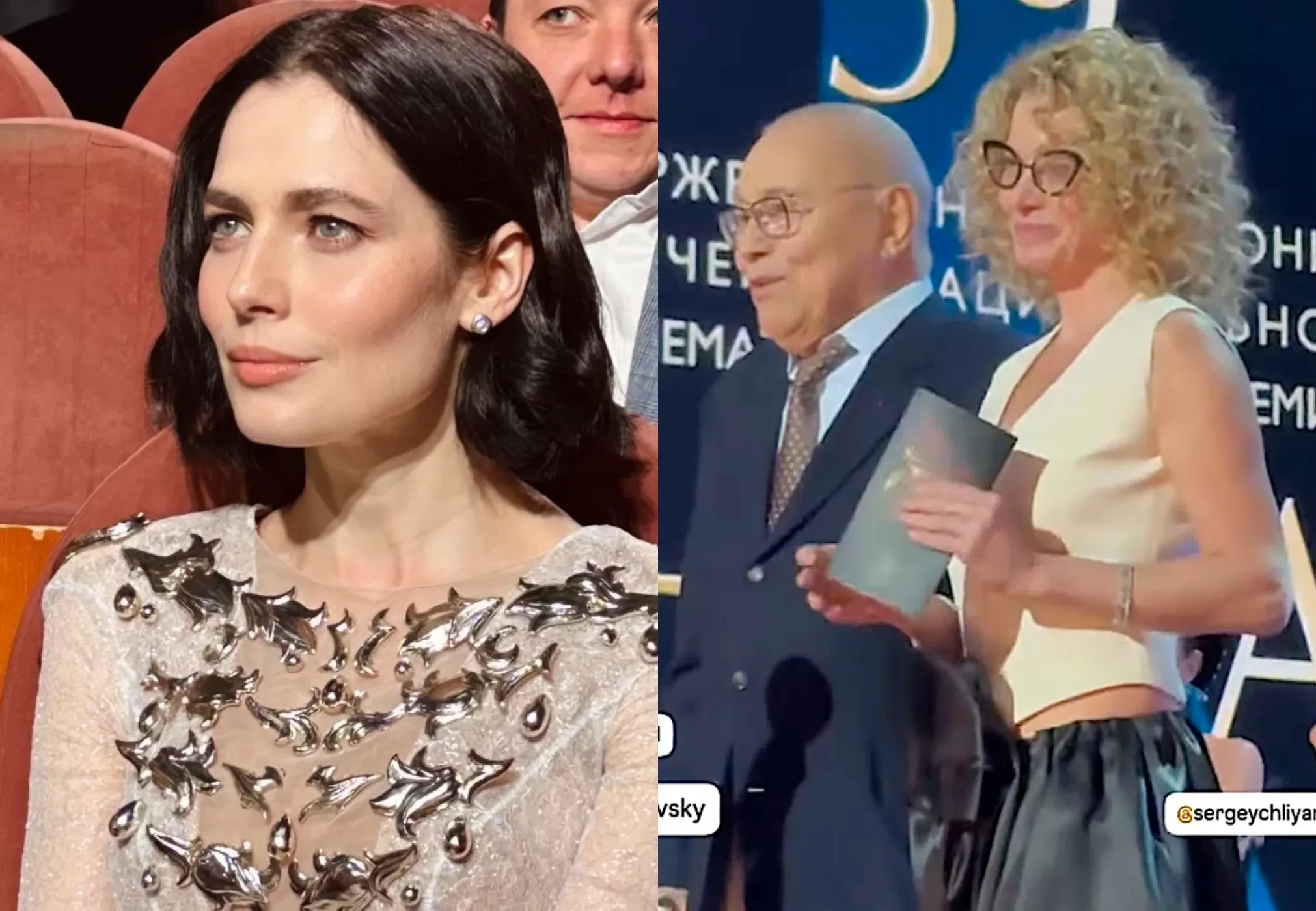 42-летняя Юлия Снигирь появилась на премии в полупрозрачном белом платье с серебряным декором, а 52-летняя Юлия Высоцкая пришла в белой жилетке и юбке-волане с цветком. Жена Юры Борисова, актриса Анна Шевчук, надела на мероприятие чёрное платье-комбинацию, а звезда "Аноры" выбрал классический смокинг.