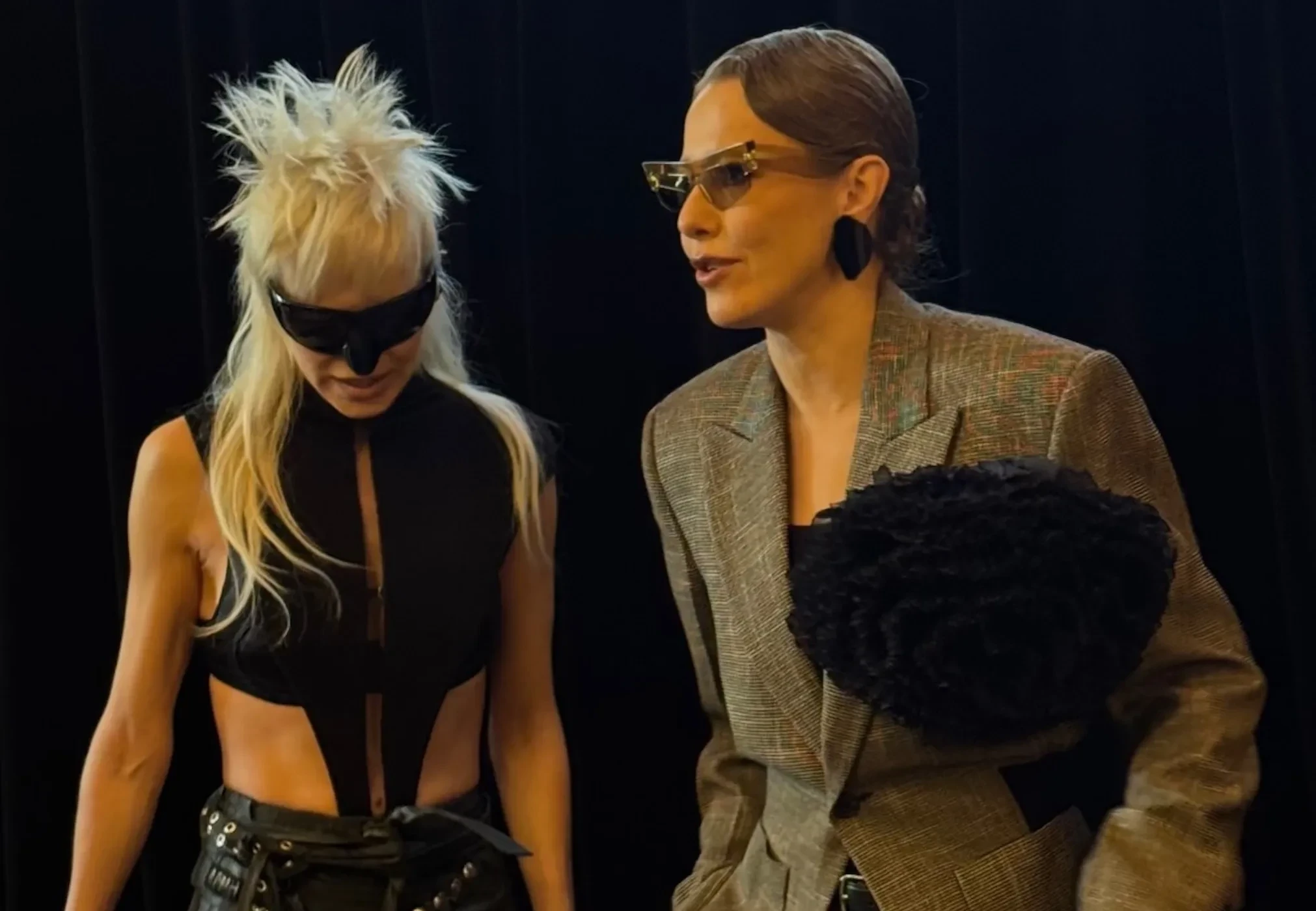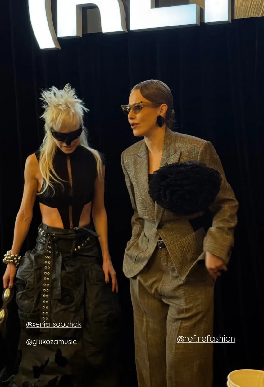 44-летняя Ксения Собчак появилась перед публикой в сером брючном костюме с массивным цветком. 39-летняя подруга журналистки, певица Глюкоза, которая редко выходит в свет, пришла в ярком образе — топе с вырезами, широких брюках и солнцезащитных очках-маске.