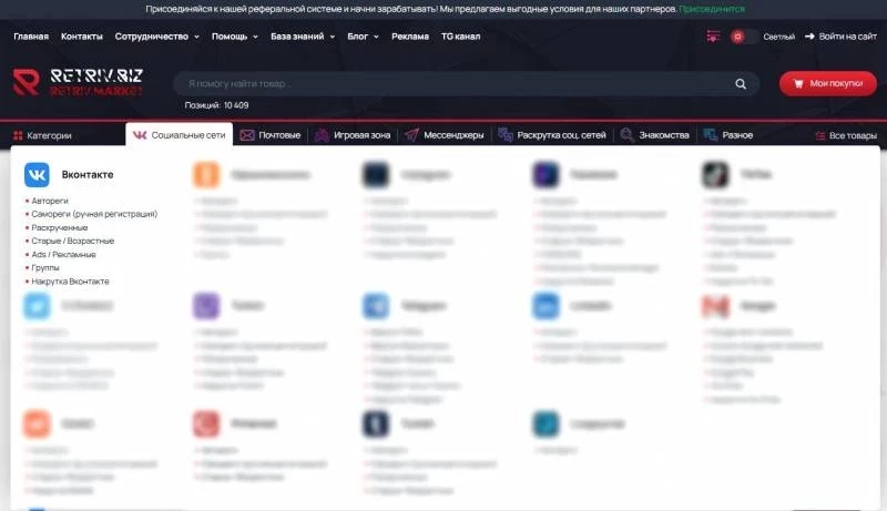 Retriv.Market предоставляет удобный интерфейс для выбора учеток и их покупки. Пользователю не нужно искать продавцов на сомнительных форумах или переживать за безопасность сделки.