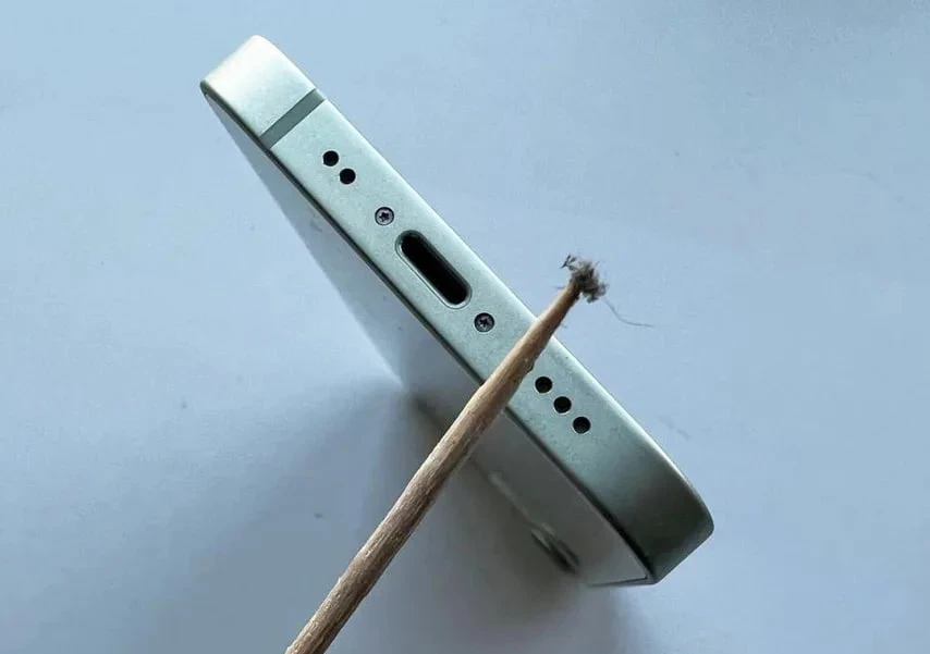 Возьмите обычную деревянную зубочистку и аккуратно очистите разъем от крупных комков пыли или ворсинок. Делайте это без нажима, чтобы не повредить внутренние контакты.
