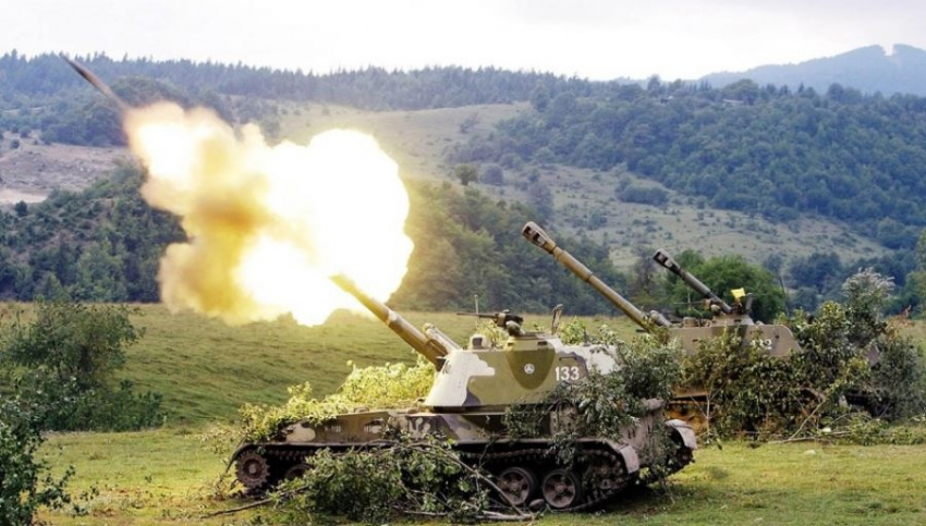 Портал «Русская весна» обнародовал видео с обстрелом батареей САУ 2С3 «Акация» группировки «О» («Отважные») укрепрайона ВСУ.
