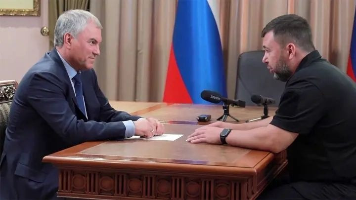 Спикер думы встретился с главой ДНР Денисом Пушилиным, депутатами местного парламента и его руководством. Ключевой задачей во время встречи Володин назвал восстановление мирной жизни на Донбассе.