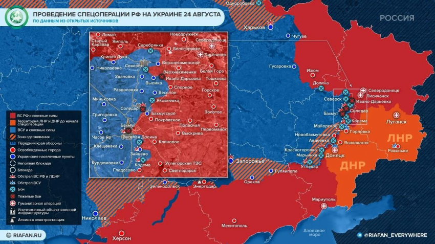 Новая карта боевых действий на Украине по состоянию на сегодня, 24.08.2022. Актуальная информация