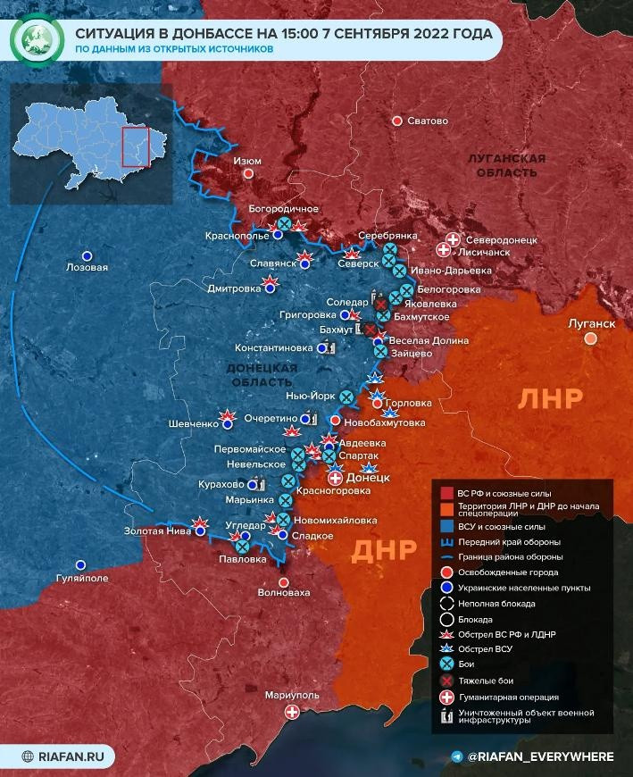 Новая карта боевых действий на Украине сегодня, 8 сентября 2022. Актуальные данные на 08.09.2022