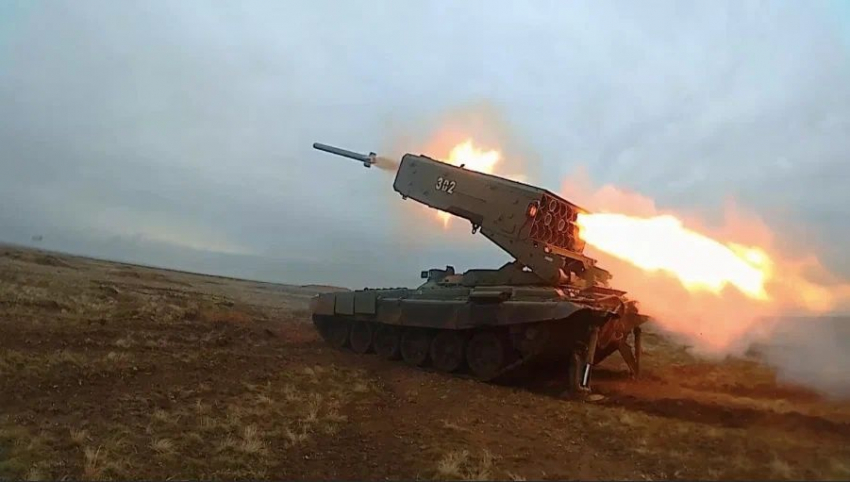 Телеграм-канал «Военкоры Русской Весны» публикует видеокадры в момент пуска огнеметных систем.