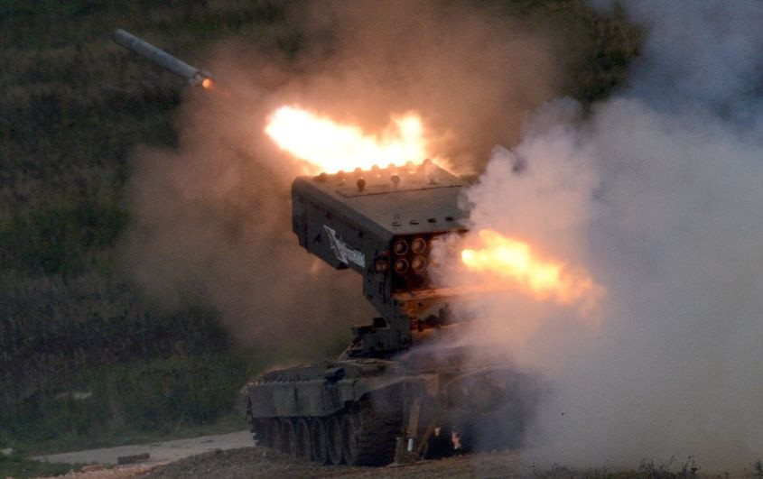 Военкоры «Русской весны» рассказали, что попытка прорыва польских наемников на указанном направлении была остановлена бойцами группировки «О» ВС РФ ударами из тяжелых огнеметных систем ТОС-1А «Солнцепек».